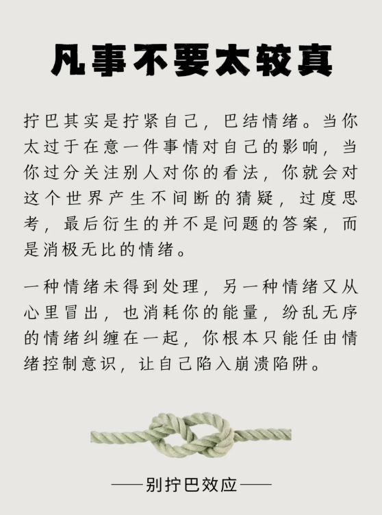 人们在面对选择或决策时,有时会陷入一种纠结、矛盾的心理状态,这种状态被称为“拧巴”。当我们处于拧巴状态时,往往难以做出决定,甚至可能产生焦虑、烦躁等负面情绪。别拧巴效应则是指,当我们试图摆脱这种纠结状态时,所表现出的一种心理和行为现象。