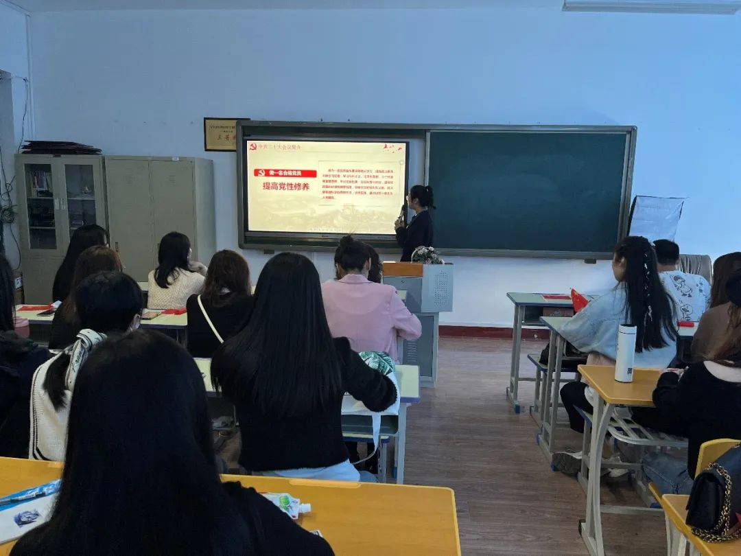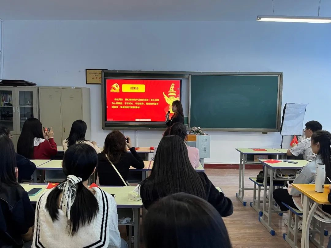 活动紧紧围绕即将召开的党的二十大以及中国共产党的光辉历程展开,员工党员们分别以四个主题展开介绍。同学们在声情并茂的讲解中感受一代代共产党人在时代的激流中奋进,在复兴的征程中铸就崇高的理想信念,领略革命先辈坚定信仰,坚强意志,在党的精神中汲取力量。