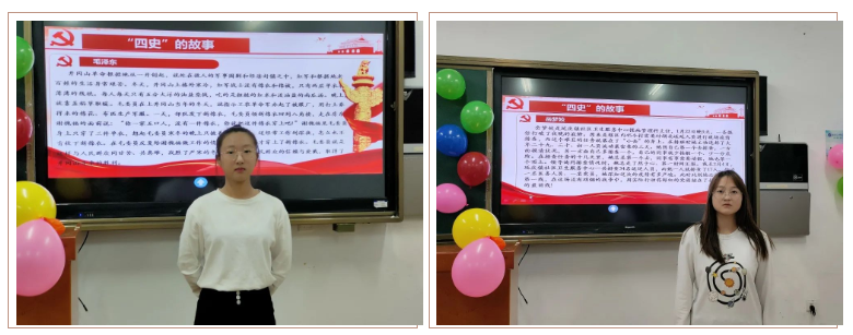 以史为鉴,可以知兴替,以人为鉴,可以明得失。回归主题“四史”精神教育,活动结尾由洪嘉娣、孙鑫莹、于爽三位同学分别讲述了关于毛泽东,刘胡兰,岳梦姣的“四史”故事,告诉我们历史是最好的教科书,多一次重温历史,我们的心中就多增添一份信念。