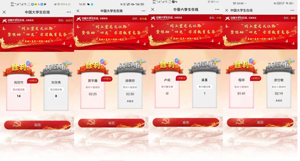 此次开展“网上重走长征路”暨推动“四史”学习的竞赛活动,团员青年们对革命先辈们克服了种种艰难困苦,最终夺取红军长征的全面胜利感到钦佩。深刻认识红色政权来之不易、新中国来之不易、中国特色社会主义来之不易,知其所来、明其所趋,继往开来、坚定前行。团员青年们表示要继承和发扬革命先辈们不怕牺牲、排除万难、敢于胜利的长征精神,坚定理想信念,高扬爱国旗帜,撰写新时代新青年的绚丽华章。