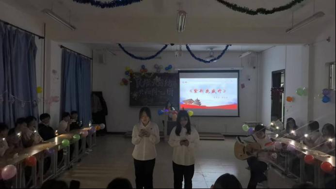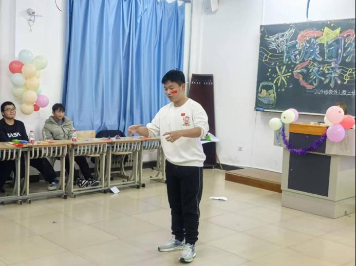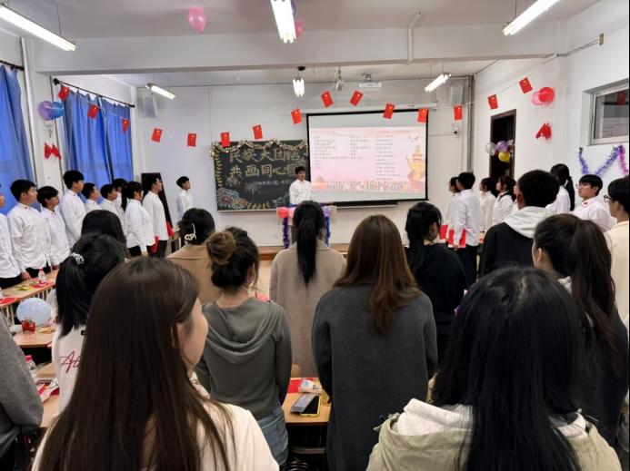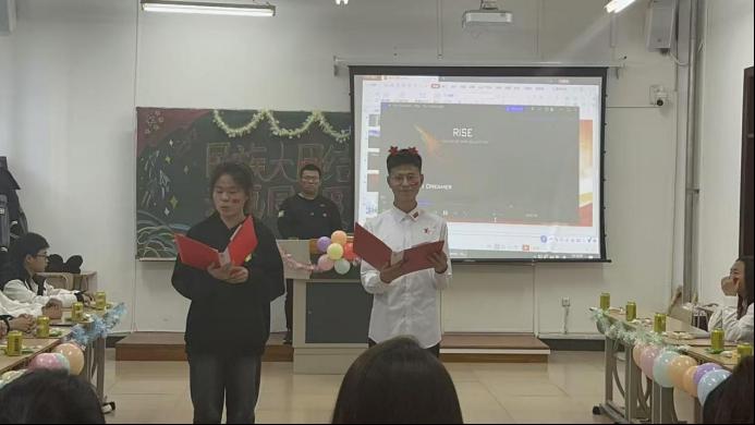 在计算机科学与技术二班的活动现场,万金威和周昕宇两位同学带来朗诵《民族团结》,深情诠释了民族团结的重要性。随后,由李进、李镇宇等同学带来的情景剧《谁也不能阻挡中国的统一》,寓意着中国的每一寸土地都是祖国母亲不可分割的一部分。最后,全体同学共同演唱歌曲《爱我中华》,用歌声传递对祖国深深的爱意。