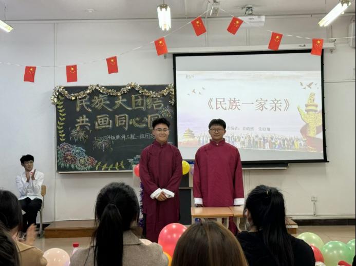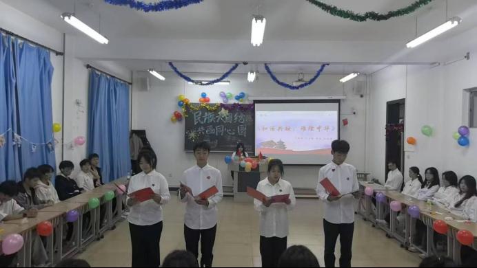 活动伊始,由孟宇茜、王琪等同学带来的演讲《共画同心圆,铸牢民族魂》,使同学们深刻感受到民族团结的重要性。随后,邹柏松同学演唱歌曲《万疆》,带领同学们领略了祖国的万疆画卷。最后,由里悦同学带来的舞蹈表演《繁花》,让同学们更加深刻地体会到各民族文化的魅力。