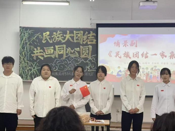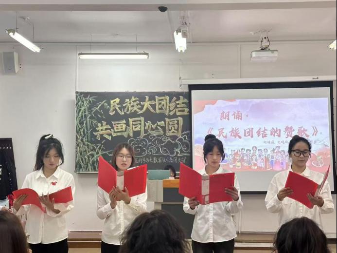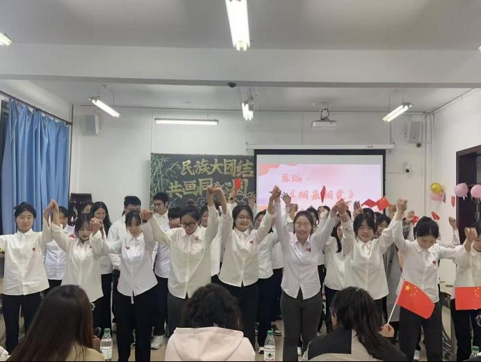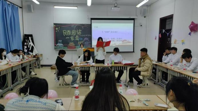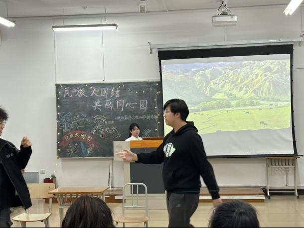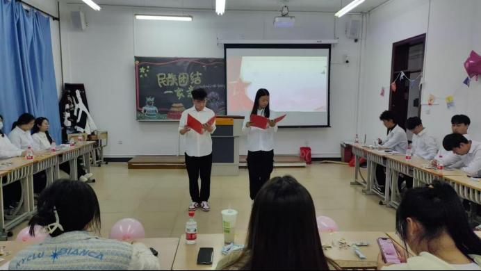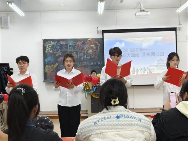在计算机科学与技术二班的活动现场,由王东旭、俞念欣等同学带来的朗诵《团结的旋律,民族的辉煌》,让同学们感受到了中华民族团结一心的壮丽史诗。随后,游戏《看看你的民族知识储备》,增加了同学们对五十六个民族的了解。最后,活动在合唱《最炫民族风》中圆满结束。