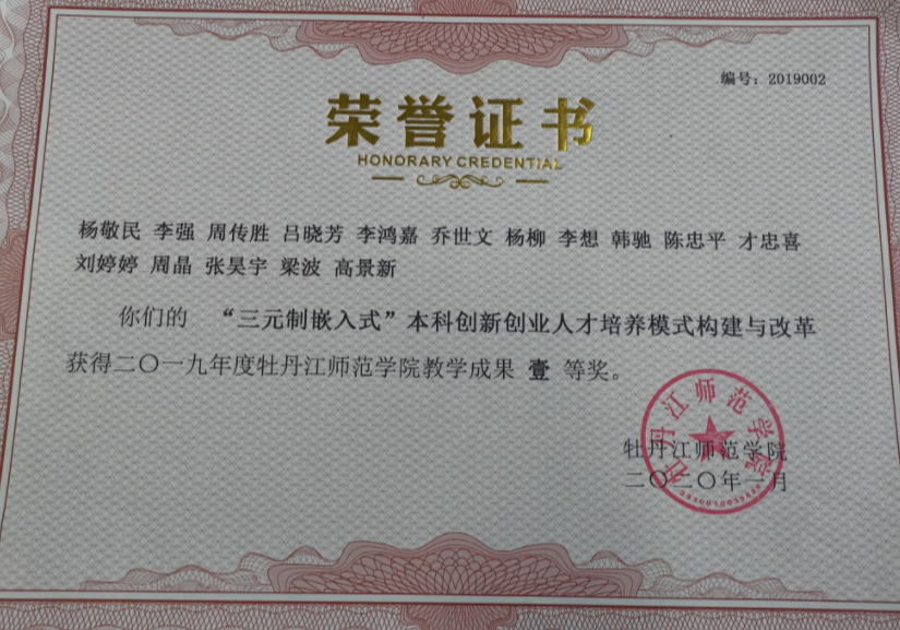 “三元制嵌入式”本科创新创业人才培养模式构建与改革”获得二〇一九年度伟德国际1946教学成果壹等奖。