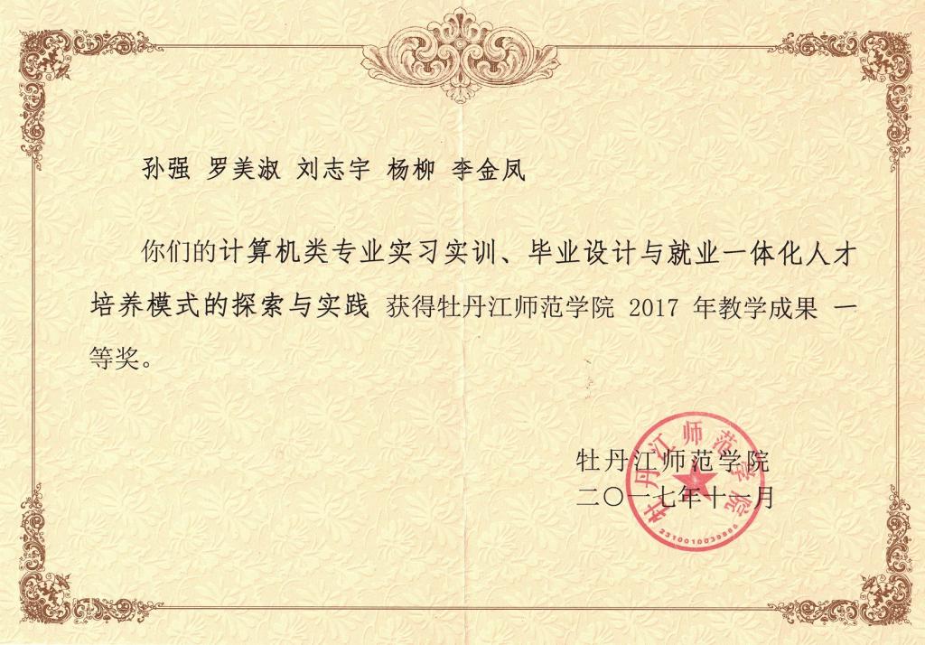 “计算机类专业实习、实训、毕业设计与就业一体化人才培养模式的探索与实践”获得2017年度伟德国际1946教学成果 一等奖。