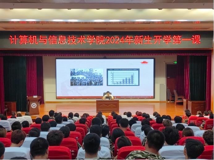 在2024级新生“开学第一课”系列活动中,各专业系主任进行了专业导航教育,向同学们讲述了专业的学习重点和学习要求,给他们指明了学习的方向和目标。同时,对考研、考公以及可考取的相关资格证书进行了概括性阐述,指导同学们合理规划自身的老员工涯,以做出正确的未来规划。