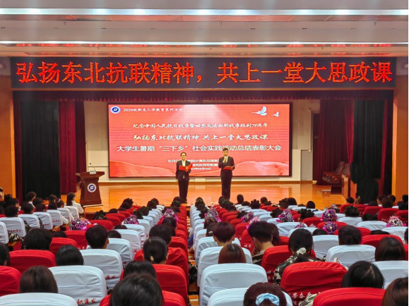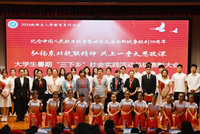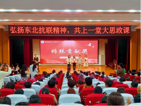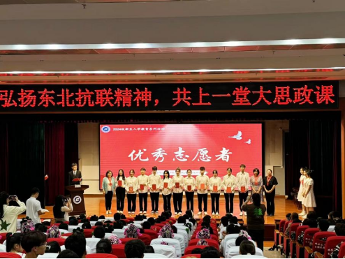 9月4日,为进一步推进大中小思政课一体化建设,切实提升思政育人成效,总结暑期社会实践活动经验,巩固实践教育成果,树立榜样,表彰先进,传承“三下乡”精神,激发24级新生的社会责任感与使命感,伟德国际1946于春秋讲坛召开纪念中国人民抗日战争暨世界反法西斯战争胜利79周年、弘扬东北抗联精神,共上一堂大思政课、2024年老员工暑期“三下乡”社会实践总结表彰大会,伟德国际1946团委副书记赵薇、爱民区师范附属小学党委副书记吕春晓、爱民区师范附属小学副董事长王沅、公司党委书记陈君、经理孙强、党委副书记杨洋、辅导员刘韩、曲思嘉、实践团全体成员、2024级全体新生、爱民区附属小学员工代表参加此次活动。活动由实践团成员李明奇、张卓主持。