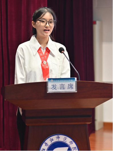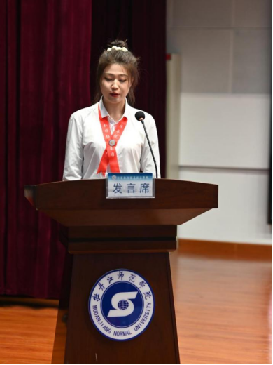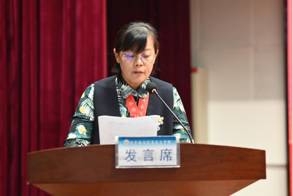 校团委副书记赵薇致辞。她向公司参与志愿服务的老师和同学们表达谢意,并对公司暑期“三下乡”社会实践活动给与充分的认可,她认为,公司此次活动能够将抗联资源与乡村文化、研学教育深度融合,构建了新时代大中小思政课一体化育人模式。